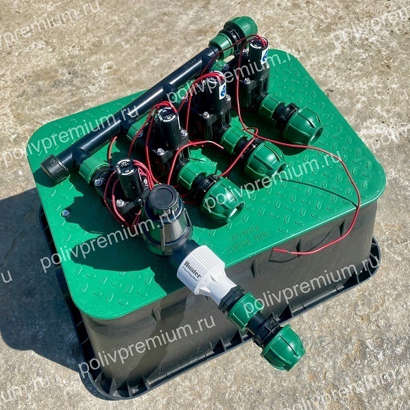 Клапаны служат для разделения системы напорного и капельного орошения на необходимое количество отдельных зон в соответствии с планировкой объекта. Устанавливаются клапаны, как правило, в подземном пластиковом коробе. Количество коробов и клапанов зависит от специфики проекта.