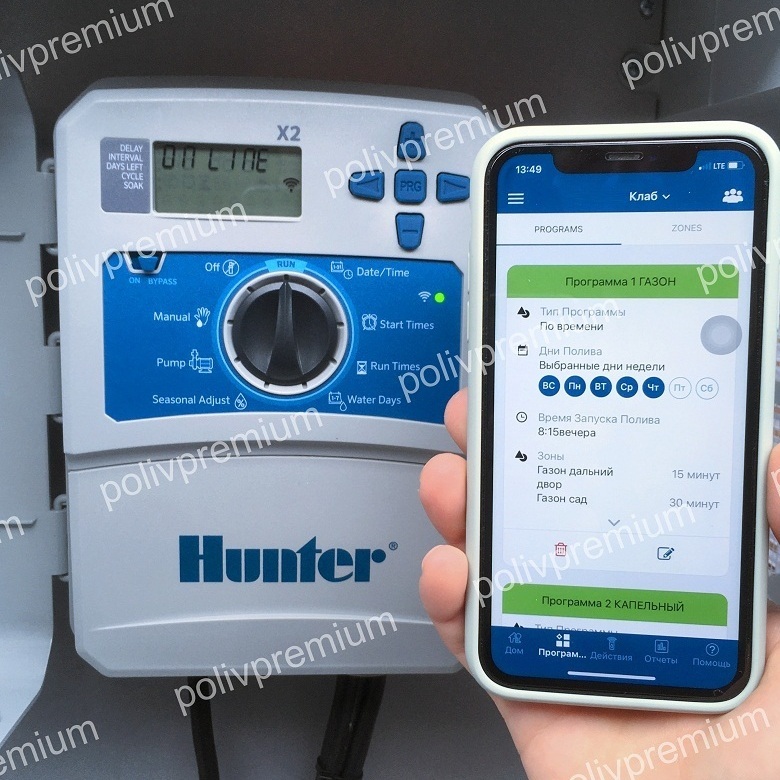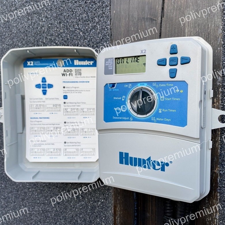 Контроллер - пульт управления, является одним из основных элементов системы автоматического полива газона. Именно он отвечает за график периодичности и длительности полива. Контроллеры Hunter X-Core, Hunter X2 удобны в настройке и управлении. Для точной корректировки графика полива дополнительно устанавливается погодный датчик. Модель и комплектация подбирается по параметрам участка орошения.